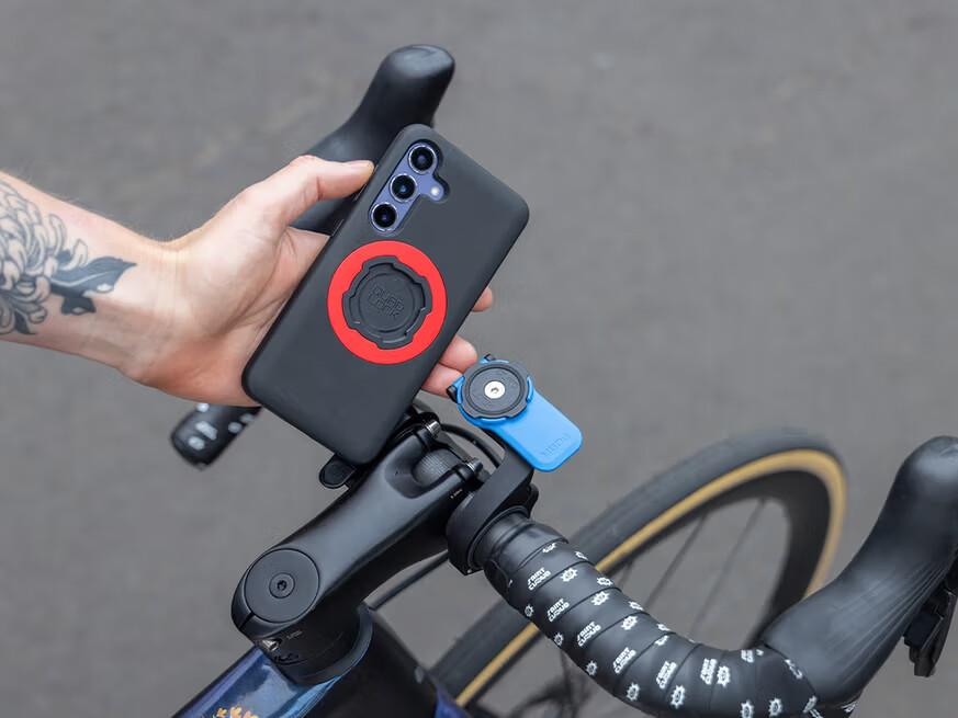Quad Lock Out Front Mount je prémiový držák telefonu na kolo, který umisťuje zařízení před řídítka pro optimální výhled a lepší ergonomii při jízdě. Toto řešení je oblíbené zejména mezi silničními cyklisty, protože zajišťuje přirozenou pozici telefonu pro navigaci a zároveň přispívá k lepší aerodynamice.