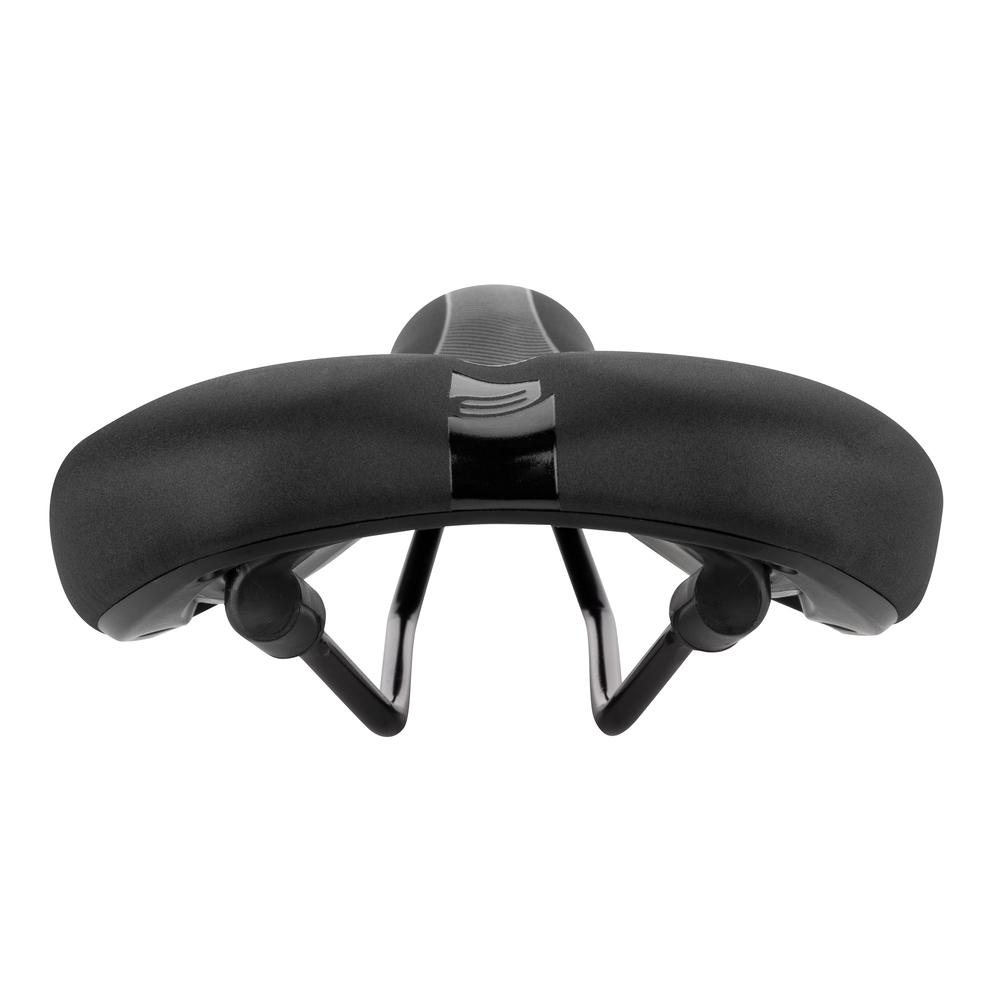 Pohodlné široké dámské sedlo vhodné například na cykloturistiku a na městská kola. Disponuje vysokou a měkkou vrstvou polstrování na nylonovo-pryžové konstrukci s podélným vybráním pro snížení tlaku v citlivých místech pro zlepšení jízdního komfortu. Bez podsedlového zámku,skelet sedla nylon, ocelové vzpěry s měřítkem, materiál umělá kůže.