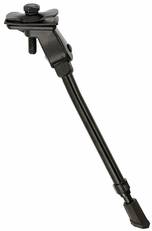 Lehce dotáhneme, zkontrolujeme zda stojan nezasahuje do výpletu zadního kola a do trajektorie pohybu nohy při šlapání.