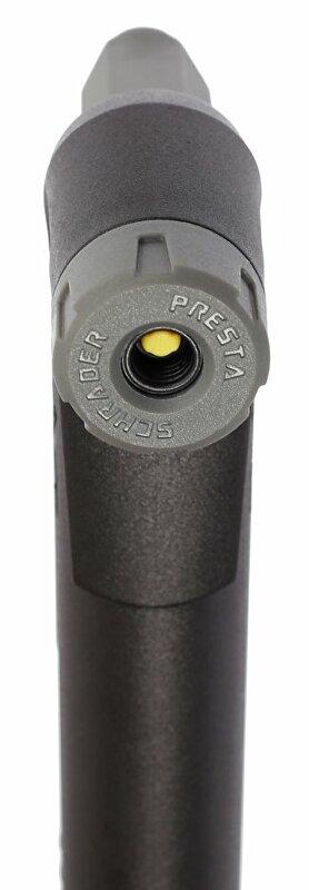 Mini hustilka MAX1 Double Valve s univerzální duální hlavou bez nutnosti úpravy hlavy před hustěním. Díky této duální hlavě se hustilka používá velmi snadno a jednoduše. Tělo hustilky je vyrobeno z tuhého ABS plastu a díky němu je docíleno velmi nízké hmotnosti. Výklopné ergonomické T držadlo. Duální hlava použitelná pro auto-ventil (AV) i pro galuskový ventil (FV). Držák na rám je součástí balení.