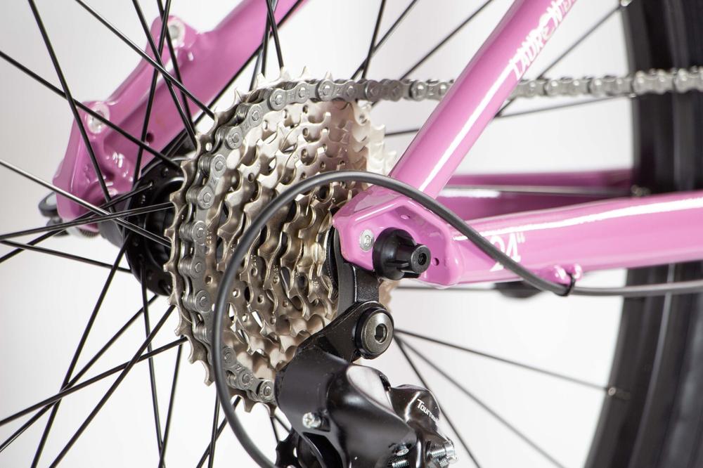 Modely Lauren 24" – základem je lehký hliníkový rám se sníženou horní trubkou, přehazovačka Shimano s 8 převody a otočné řazení. Kolo je vybaveno širšími plášti pro lepší stabilitu.