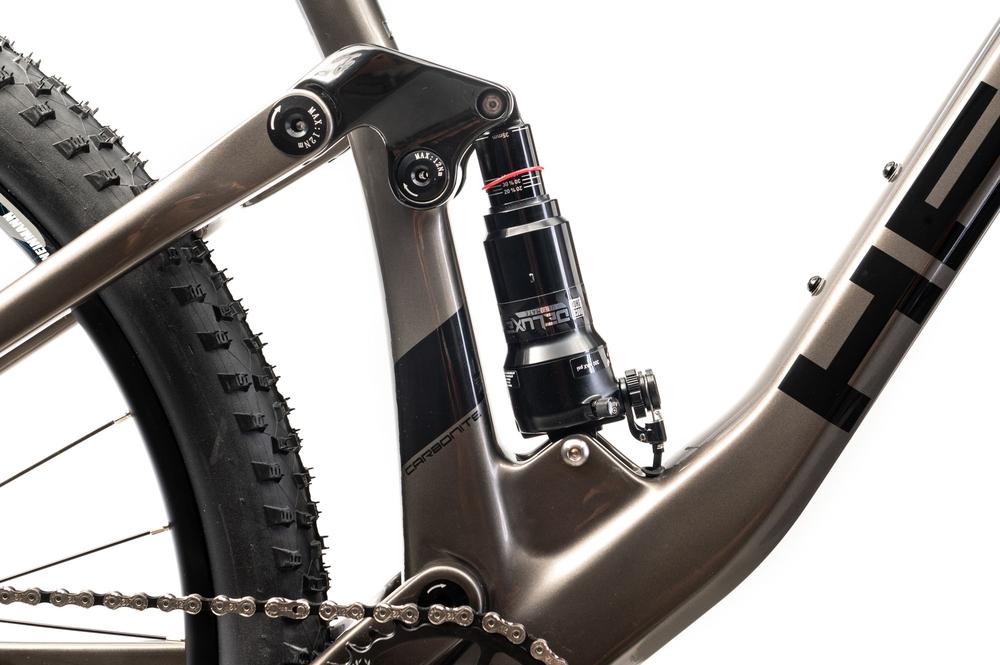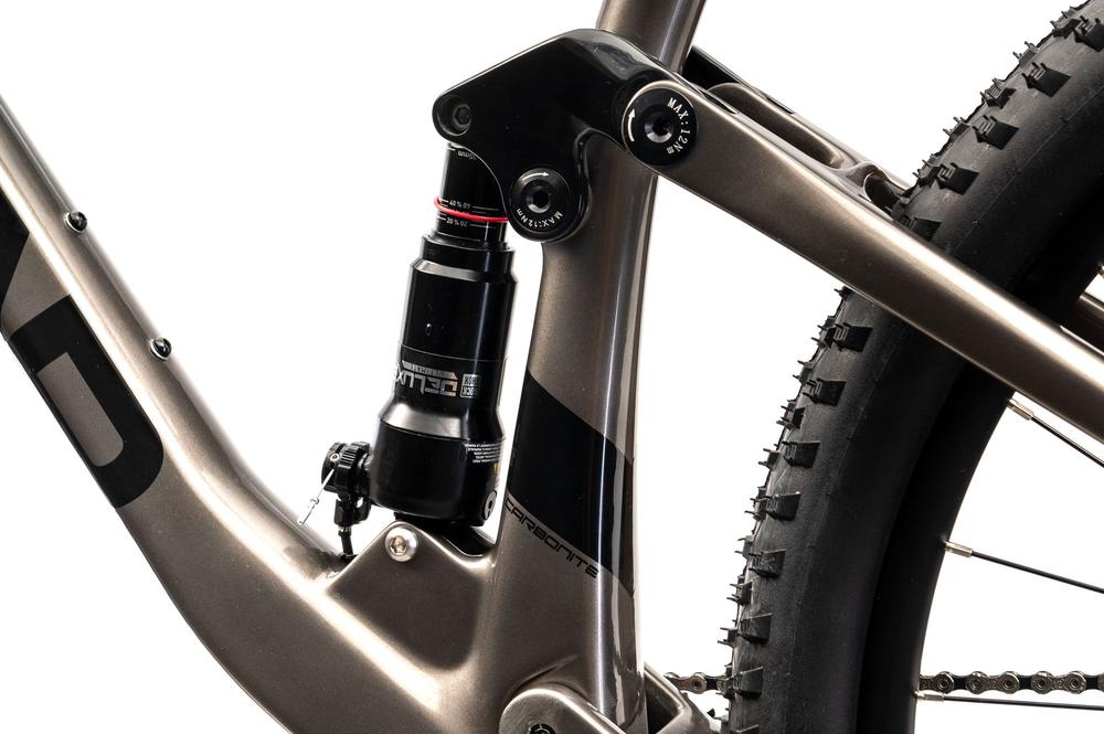 Lehký pevný karbonový rám s vnitřním vedením kabeláže, boost standardem a 100 mm zdvihu