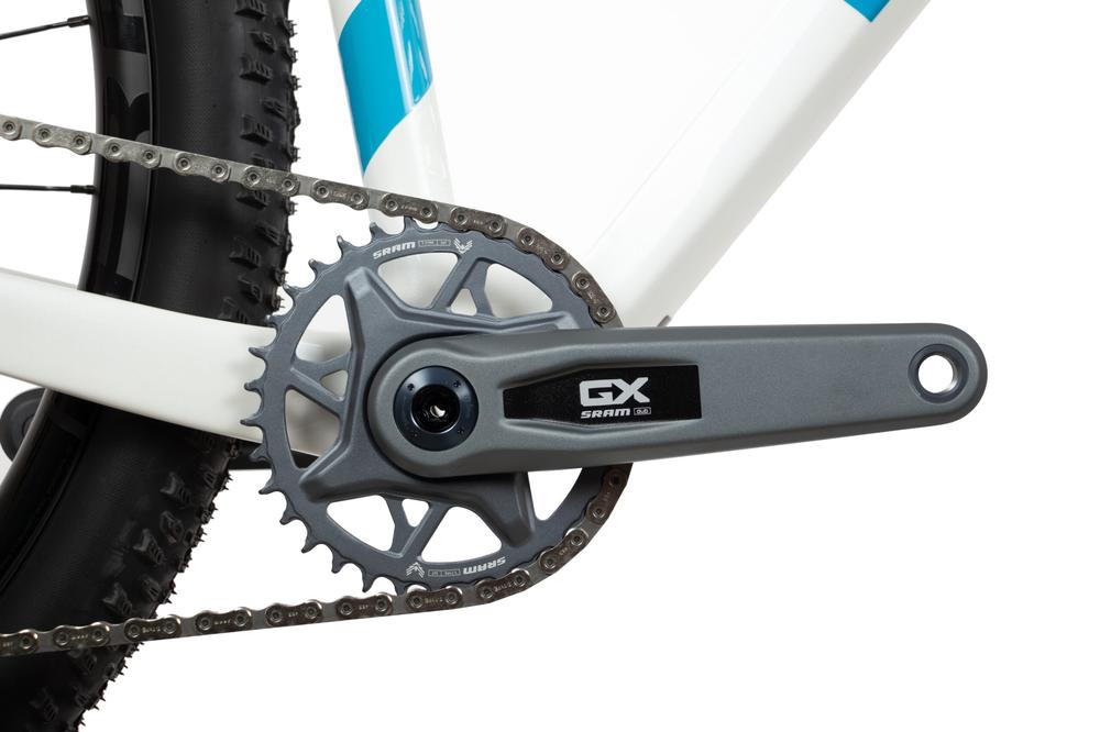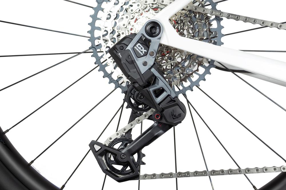 Základem kola je karbonový rám, doplněný o karbonové výplety a karbonový kokpit. O rychlé a přesné řazení se stará elektronické řazení SRAM GX Eagle AXS 1×12, zatímco hydraulické kotoučové brzdy SRAM Level Bronze poskytují jistotu a kontrolu v každé situaci. Vše je osazeno s jediným cílem – maximální výkon a rychlost.