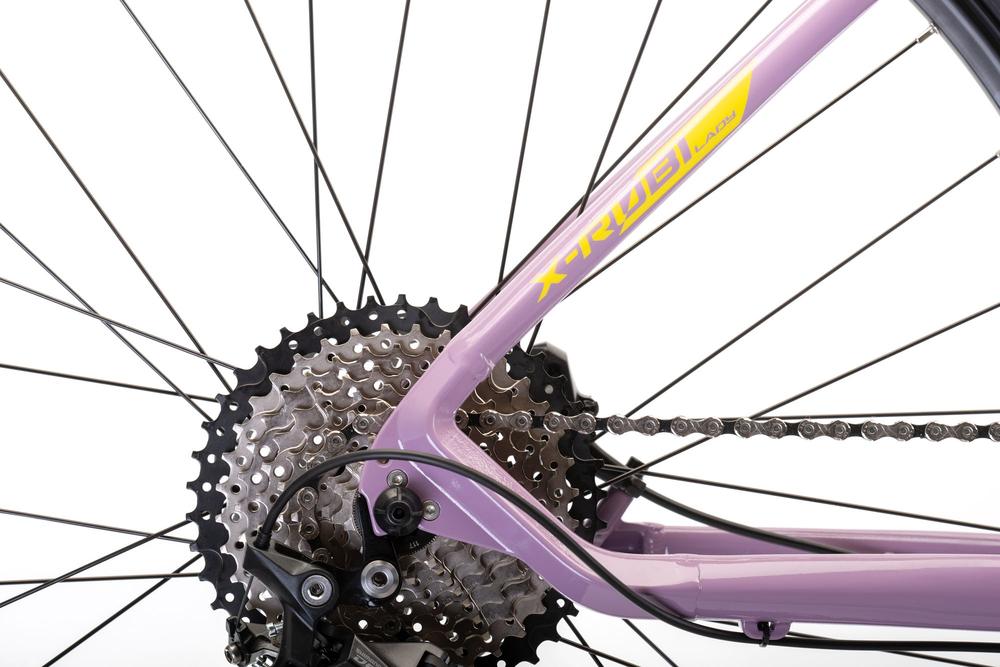 Model X-Rubi Joy je vybaven v úrovni hobby a lehčí cykloturistiky. Odpružená vidlice Suntour X1 je vhodná pro rekreační jezdce, kteří hledají cenově dostupné řešení s jednoduchým nastavením. Převody Shimano Deore 2x10 přinášejí velmi dobrou přesnost řazení, spolehlivé v terénu a jsou vhodné jak pro rekreační, tak i lehčí sportovní použití. Kazeta o velkém rozsahu 11–42 zubů v kombinaci s dvoupřevodníkem vepředu – převody vám chybět určitě nebudou.