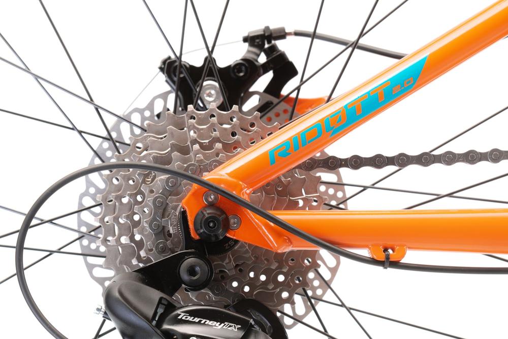 Model Ridott 2.0 - na kole je odpružená vidlice a mechanické kotoučové brzdy. Kolo si díky tomu poradí s terénem, kotouče brzdí za každých podmínek. Ideální varianta k občasným výletům.